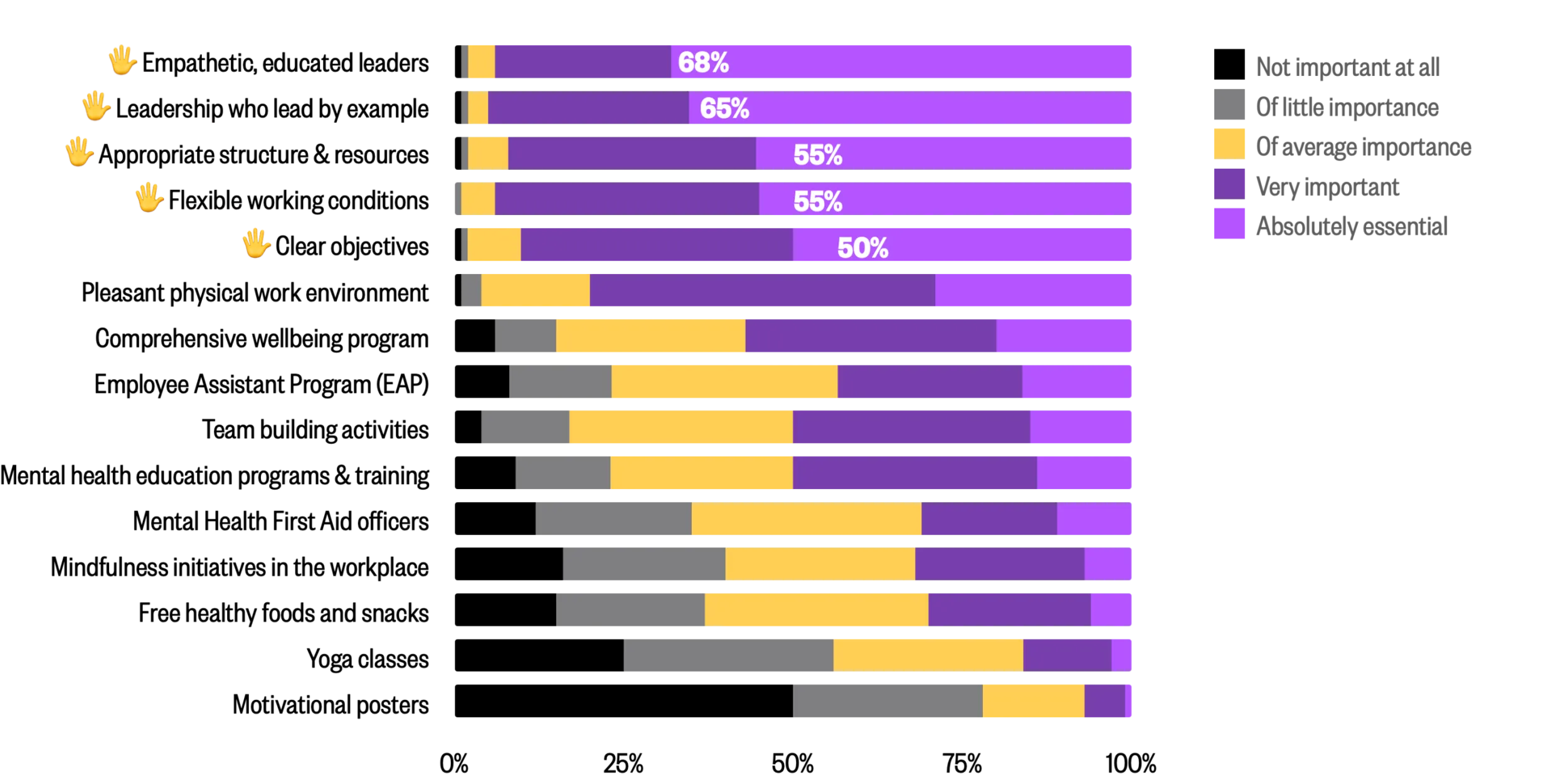In our 2020 Mentally-Healthy research we asked “what could make the biggest improvement to mental wellbeing in the workplace?”